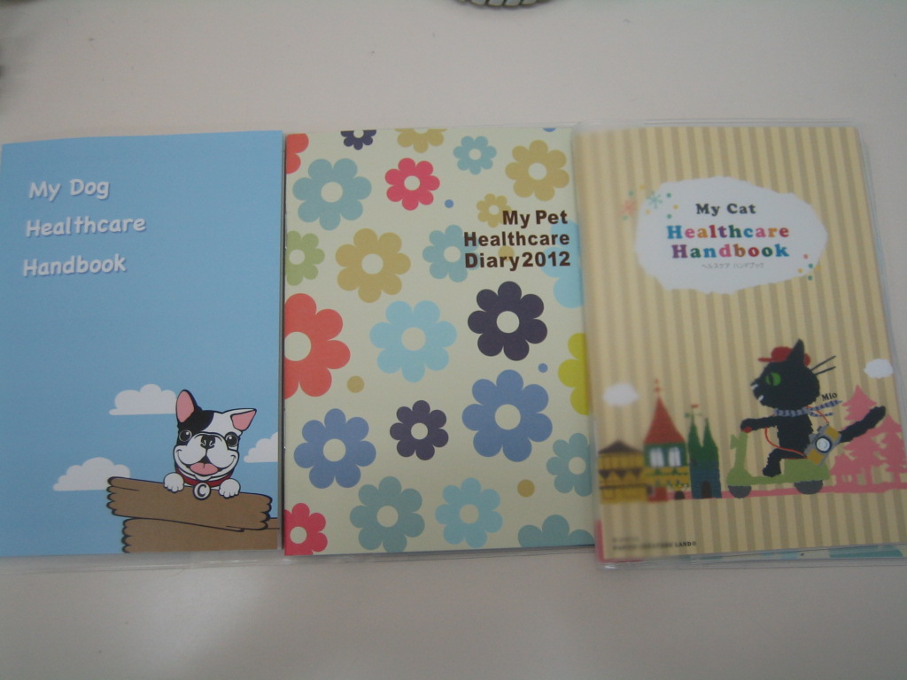 左から、犬用のハンドブック、犬猫共通のスケジュール帳、猫用のハンドブックになります。