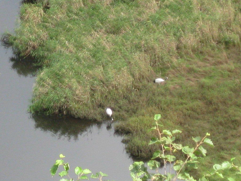 展望台のうえから、湿原をみると、2羽のタンチョウヅルが!(遠いですけどね